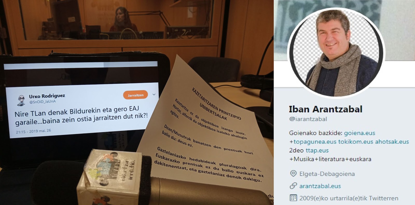 Gaurkoan “Arma Txio Pum” saioan kazetaritza ereduez hitz egin dugu Iban Arantzabalekin. Goienaren kazetaritza eredua eta “beste batzuena” alderatu ditugu.